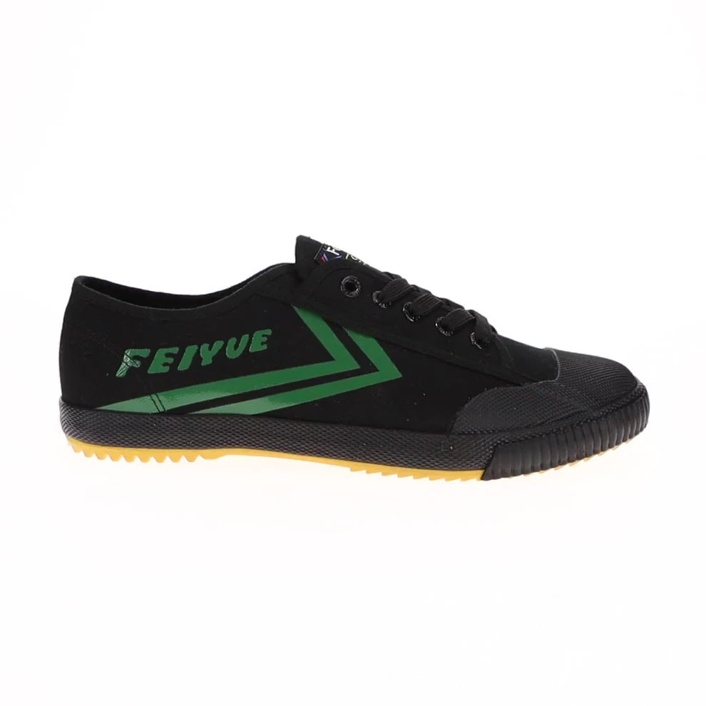 FE LO 1920: The Black/Green Fe Lo 1920 is our tribute to the authentic martial arts. This unisex canvas shoe has been created with a minimalistic design aesthetic and coupled with a functional performance construction. It has clean lines, is lightweight, airy and breathable, super comfortable and rich in history. With added features for flexibility and comfort, the 1920 is built for movement. Plus, the grip of the sole tread provides maximum traction, making these a best choice training shoe. Streetwear style, with Comfort and Function‚ Flying forward.